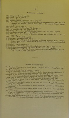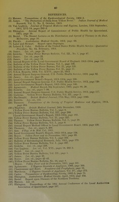 ![Quarantine Service. SERVICE PUBLICATION NUMBER 6. AUSTRALIA AND YELLOW FEVER 1. The Danger of the Introduction of Yellow Fever into Australia By J. H. L. CUMPSTON. M.D., D.P.H.. DIRECTOR OF QUARANTINE. 2. Clinical Diagnosis of Yellow Fever By a. BREINL, M.D.. DIRSCTOR OF TH£ AUSTRALIAN INSTITUTE OF TROPICAL MEDICINE, 3. Report of Survey of the Distribution of STEGOMYIA FASCIATA in the Ports of Queensland . By F. H. TAYLOR. ENTOMOLOGIST TO THE AUSTRALIAN INSTITUTE OF TROPICAL MEOICINB. 4. The Recorded Occurrence of STEGOMYIA FASCIATA in Australia and New Guinea By F. H. TAYLOR. Uaued under the authority of the Minister for Trade and Customs. [151 i-] BY AUTHORITY I ALBERT J. MULLETT. OOVERNMENT PRINTER, MELOOURNR. 0,8197.](https://iiif.wellcomecollection.org/image/b21352410_0003.jp2/full/800%2C/0/default.jpg)