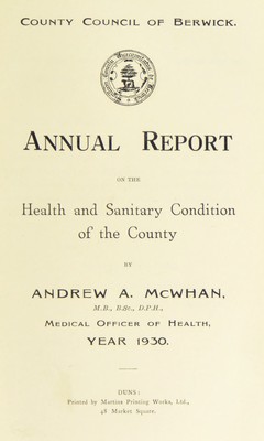 [Report 1930] / Medical Officer of Health, Berwick County Council.