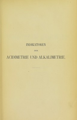 Indikatoren der Acidimetrie und Alkalimetrie / von Fritz Glaser.