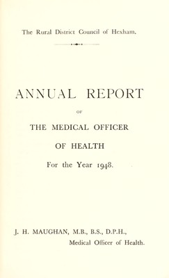 Credit: [Report 1948] / Medical Officer of Health, Hexham R.D.C. Source: Wellcome Collection.
