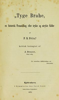 Tyge Brahe, en historisk fremstilling efter tryke og utrykte kilder af F.R. Friis : kritisk betragtet.