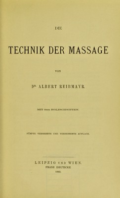 Die Technik der Massage / von Dr. Albert Reibmayr.