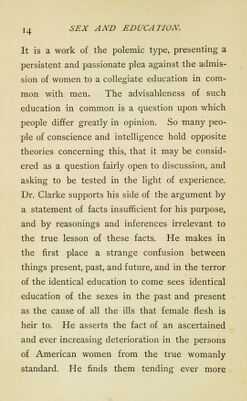 Credit: Sex and education : a reply to Dr. E. H. Clarke's "Sex in education" / edited, with an introduction, by Mrs. Julia Ward Howe. Source: Wellcome Collection.