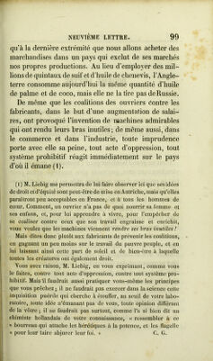 Lettres sur la chimie considérée dans ses applications à l'industrie, à la physiologie et à l'agriculture ... / française publiée par M. C. Gerhardt.