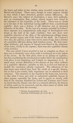 Cellular pathology : case of syphilitic deposit in the substance of the heart / by D. Rutherford Haldane.