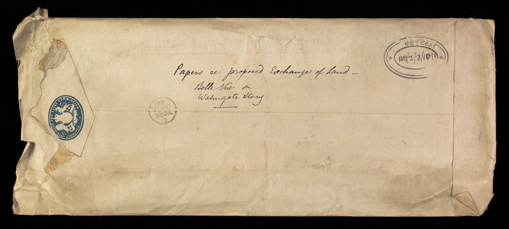 Credit: Papers and Correspondence relating to a proposed exchange of some Retreat land (part of the estate of Belle Vue) and a part of Walmgate Stray dividing the Retreat from Belle Vue. Source: Wellcome Collection.