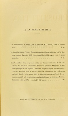 Credit: La prostitution au point de vue de l’hygiène et de l’administration en France et à l’etranger / par L. Reuss. Source: Wellcome Collection.