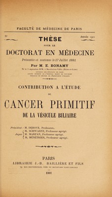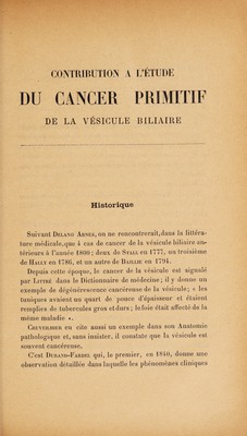 Credit: Contribution à l'étude du cancer primitif de la vésicule biliaire / par E. Bonamy. Source: Wellcome Collection.
