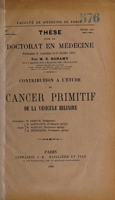 Credit: Contribution à l'étude du cancer primitif de la vésicule biliaire / par E. Bonamy. Source: Wellcome Collection.