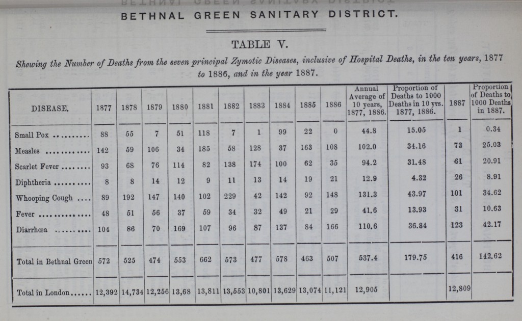 Credit: [Report of the Medical Officer of Health for Bethnal Green]. Source: Wellcome Collection.