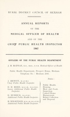 Credit: [Report 1967] / Medical Officer of Health, Hexham R.D.C. Source: Wellcome Collection.