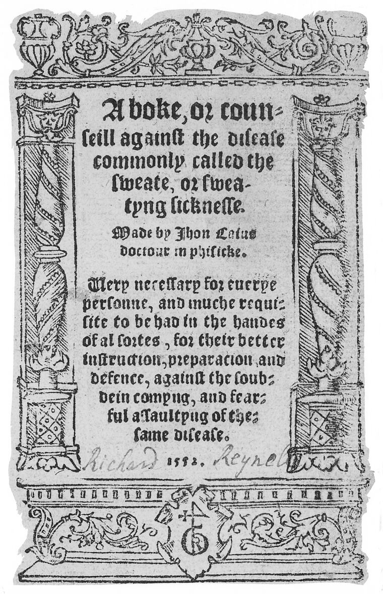 M0017624: Caius: <i>A Boke, or counseill against the disease commonly called the sweate</i>, 1552. Public Domain Mark. Source: Wellcome Collection.