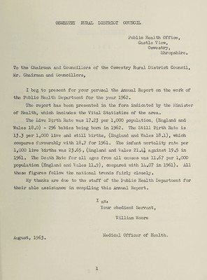 Credit: [Report 1962] / Medical Officer of Health, Oswestry R.D.C. Source: Wellcome Collection.