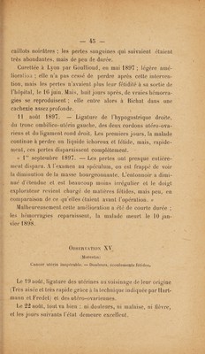 Credit: Des ligatures artérielles dans les cancers inopérables de l'utérus ... / par Paul Cantier. Source: Wellcome Collection.