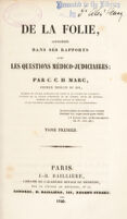 De la folie, considérée dans ses rapports avec les questions médico-judiciaires / [Charles Chrétien Henri Marc]. Public Domain Mark. Source: Wellcome Collection.