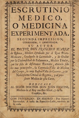 Escrutinio medico, o, Medicina experimentada / su autor ... Francisco Suarez de Ribera.