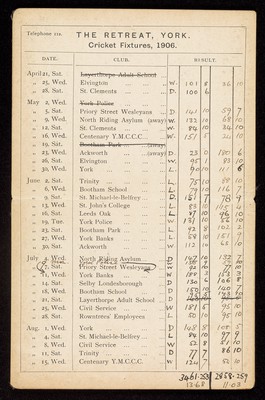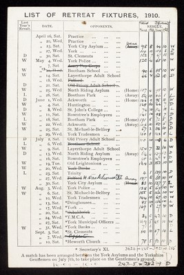Credit: Printed lists of Retreat cricket fixtures. Source: Wellcome Collection.