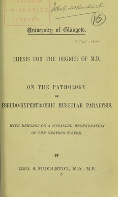 Credit: On the pathology of pseudo-hypertrophic muscular paralysis : with remarks on a so-called degeneration of the nervous system / by Geo. S. Middleton. Source: Wellcome Collection.