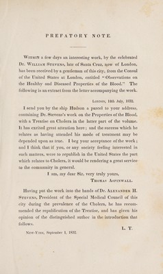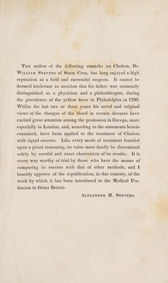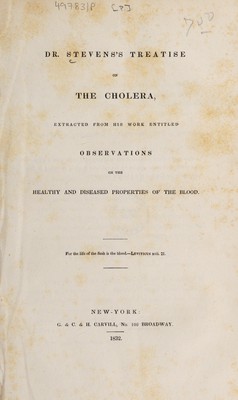 Dr. Stevens's treatise on the cholera, extracted from his work entitled Observations on the healthy and diseased properties of the blood / [William Stevens].