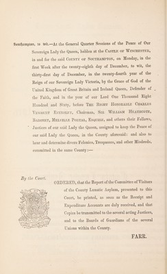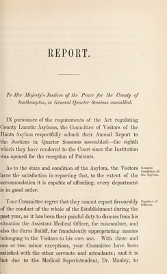 Credit: Report of the Committee of Visitors of the County Lunatic Asylum, at the Epiphany Sessions, 1861 / [Hants County Lunatic Asylum]. Source: Wellcome Collection.