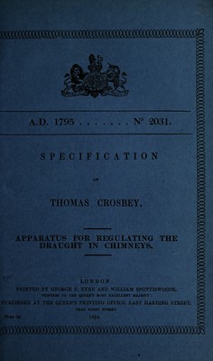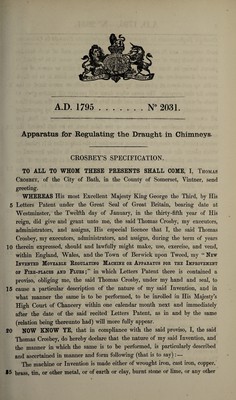 Specification of Thomas Crosbey : apparatus for regulating the draught in chimneys.