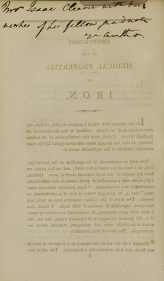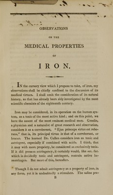 Credit: Observations on the medical properties of iron / by James C. Madison, of Virginia. Source: Wellcome Collection.