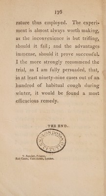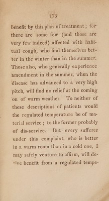 An essay on the use of a regulated temperature in winter-cough & consumption: including a comparison of the different methods of producing such a temperature in the chambers of invalids / [Isaac Buxton].