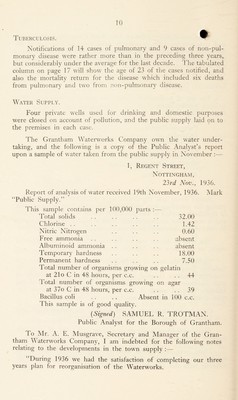 Credit: [Report 1936] / Medical Officer of Health, Grantham Borough. Source: Wellcome Collection.