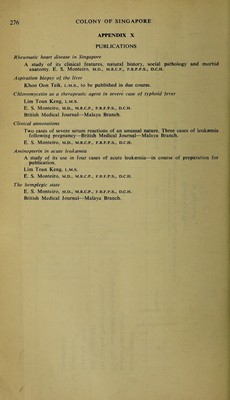 - Singapore. Medical Department
