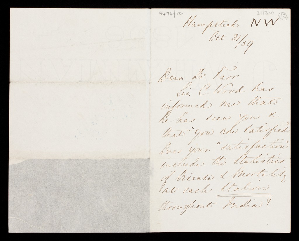 Credit: Letters to William Farr (1807-1883), statistician. Source: Wellcome Collection.