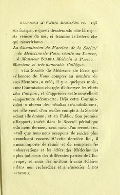 Credit: Risultati di osservazioni e sperienze sull'inoculazione del vajuolo vaccino instituite nello Spedal Maggiore di Milano dalla commissine medico-chirurgica superiormente delegata a questo oggetto / Pubblicati per decreto del Comitato Governativo della Repubblica Cisalpina. Source: Wellcome Collection.
