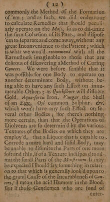 Credit: New discoveries relating to the cure of cancers. Wherein ... causticks are rejected, and ... dissolving the cancerous substance is recommended ... To which is added, a solution of some curious problems, concerning the same disease / [William Beckett]. Source: Wellcome Collection.