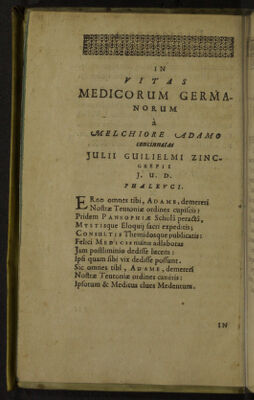 Vitae Germanorum medicorum: qui seculo superiori, et quod excurrit, claruerunt: congestae et ad annum usque MDCXX deductae / A Melchiore Adamo. Cum indice triplici: personarum gemino, tertio rerum.