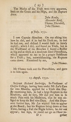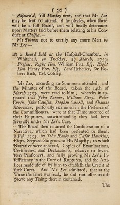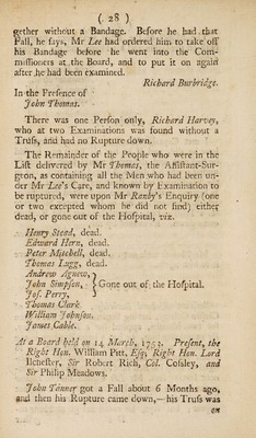 Credit: The true account of all the transactions before the Right Honourable the Lords, and others the commissioners for the affairs of the Chelsea Hospital : as far as relates to the admission and dismission of Samuel Lee, surgeon : to which is prefixed, a short account of the nature of a rupture / by John Ranby and Caesar Hawkins, Serjeant-Surgeons to His Majesty. Source: Wellcome Collection.