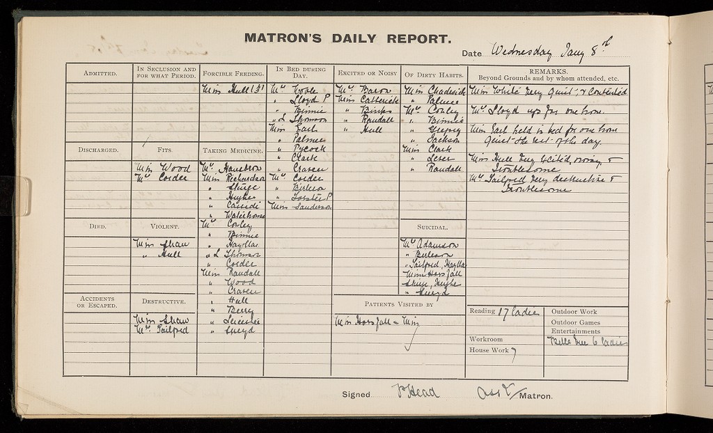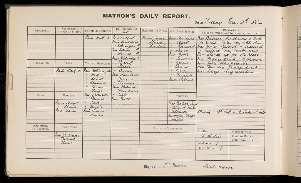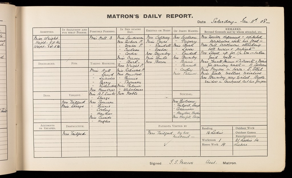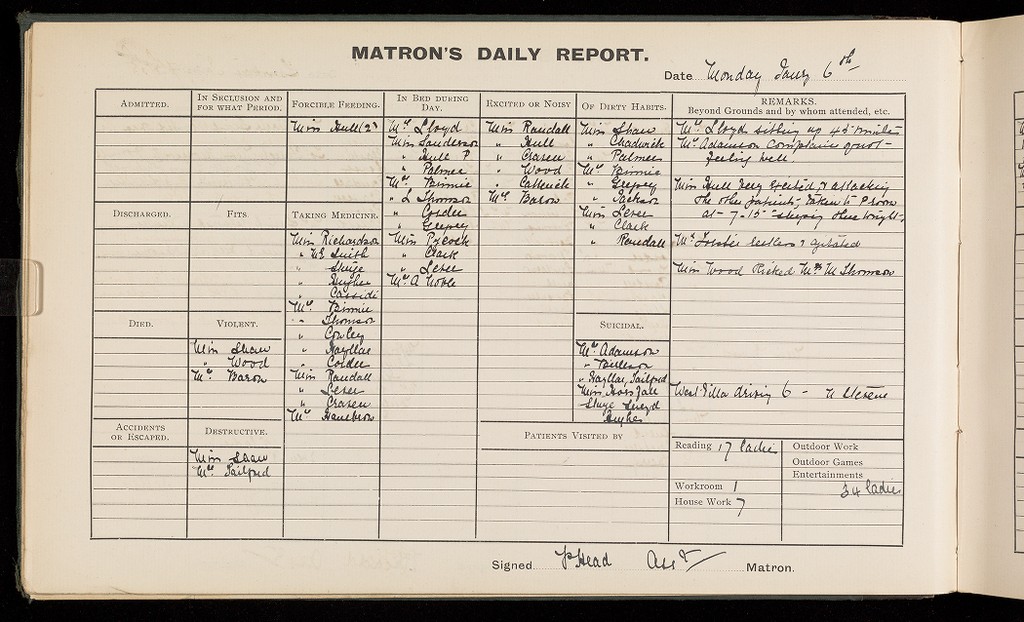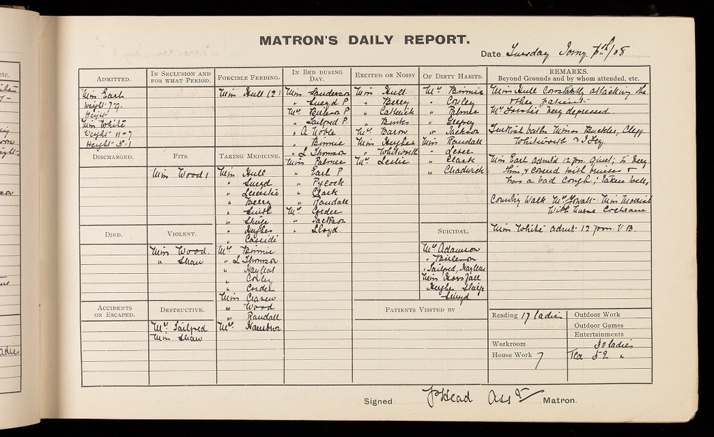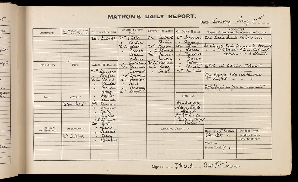Credit: 'Matron's Daily Report Book'; Females. Source: Wellcome Collection.