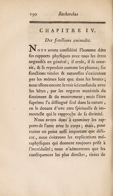 Recherches sur la nature de l'homme consideré dans l'état de santé et dans l'état de maladie / [Pierre Fabre].