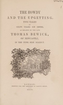 The howdy and the upgetting. Two tales of sixty years sin seyne ... in the Tyne side dialect / [Thomas Bewick].