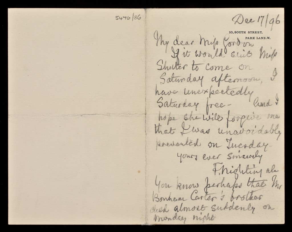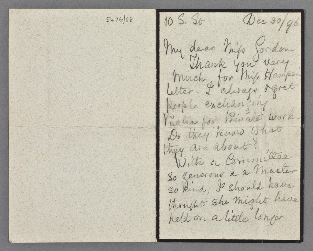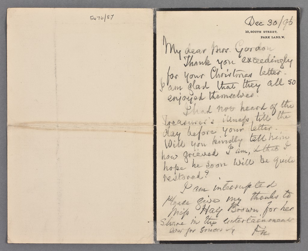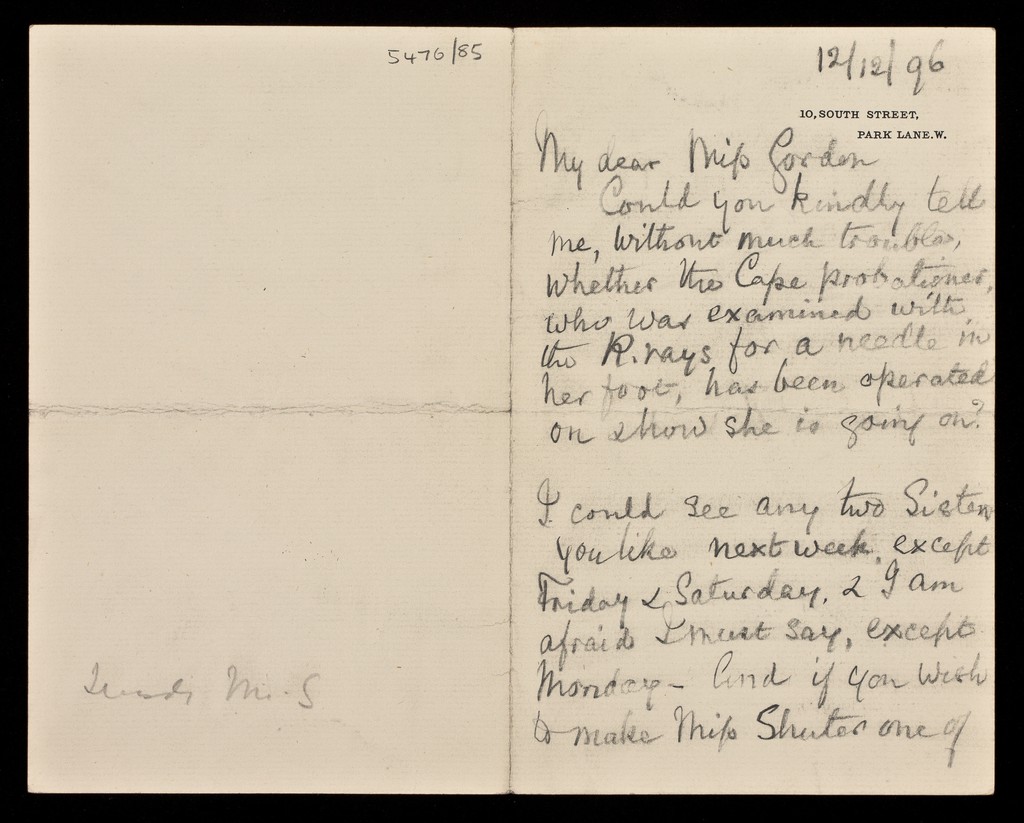 Credit: Letters to Miss Louisa Gordon, Matron at St Thomas' Hospital. Source: Wellcome Collection.
