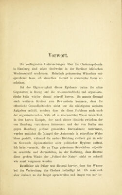 Die Cholera-Epidemie in Hamburg 1892 : Beobachtungen und Versuche über Ursachen, Bekämpfung und Behandlung der asiatischen Cholera / von Ferdinand Hueppe und Else Hueppe.