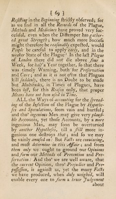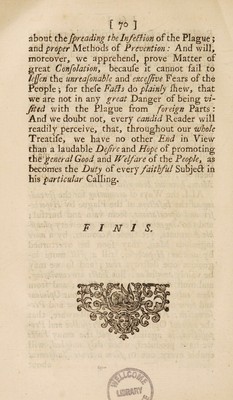 Credit: The plague no contagious disease; or, The infection of the plague seldom, if ever, communicated by touching of persons infected, or, of goods broughts from infected places, but the productive cause of the plague a fault of the air ... With some hints for the prevention and cure of the plague / [Anon]. Source: Wellcome Collection.