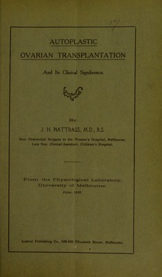 Credit: Autoplastic ovarian transplantation and its clinical significance / by J.H. Nattrass. Source: Wellcome Collection.
