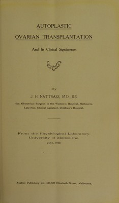 Autoplastic ovarian transplantation and its clinical significance / by J.H. Nattrass.