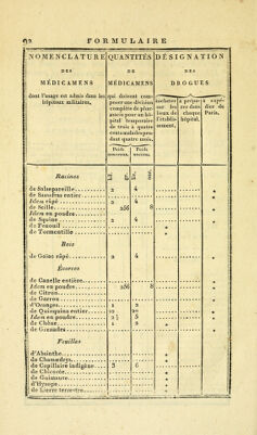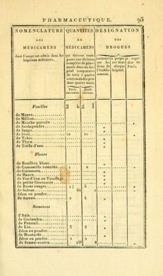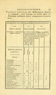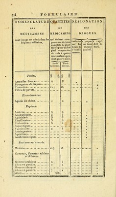 Credit: Formulaire pharmaceutique, à l'usage des hôpitaux militaires de la République Française / présenté par les inspecteurs généraux de Service de Santé des Armées de Terre, et approuvé par le Ministre Directeur de l'Administration de la Guerre. Source: Wellcome Collection.