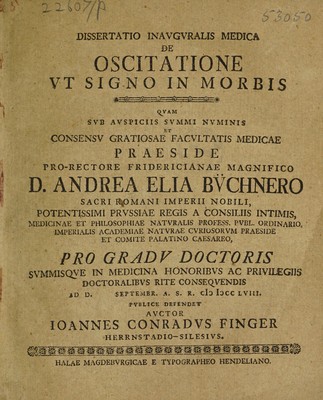 Dissertatio inauguralis medica de oscitatione ut signo in morbis / [Johann Konrad Finger].