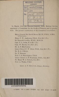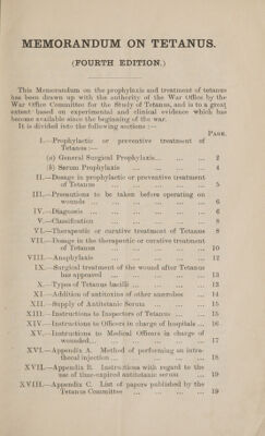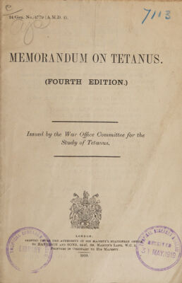 Credit: Memorandum on tetanus / issued by the War Office Committee for the Study of Tetanus. Source: Wellcome Collection.