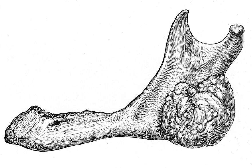 Credit: M0019634: Illustration of an Ooteoma of the mandible, 1917. Source: Wellcome Collection.