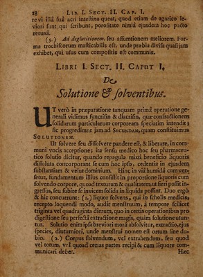 Credit: Georgii Wolffgangi Wedelii, Med. Doctoris, Consiliarii ... Pharmaciae acroamaticae disputatio I. De praeparatione, solutione et solventibus, eodem praeside / publicae disquisitioni subjecta à M. Joanne Jacobo Fikkio, ... ad diem Jul. M DC LXXXV. Source: Wellcome Collection.
