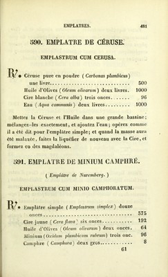 Credit: Codex, pharmacopee francaise / redigee par ordre du gouvernement par une commission composee de MM. les professeurs de la Faculte de Medecine, et de l'Ecole Speciale de Pharmacie de Paris. Source: Wellcome Collection.