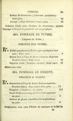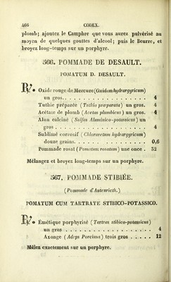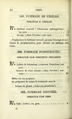 Credit: Codex, pharmacopee francaise / redigee par ordre du gouvernement par une commission composee de MM. les professeurs de la Faculte de Medecine, et de l'Ecole Speciale de Pharmacie de Paris. Source: Wellcome Collection.