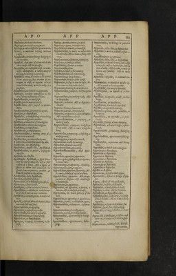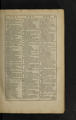 ![3' Anticuorc, .w Antecore. Antidilpofitione, ah tintidijfojition^ or precedent inclination. Antidoto, an antidote or.countcrpoi- fon. Antiéne, a kind ofhfiingpeares. Antiéfì, thofe that dwell ynder one balfe Meridian andTaralell ofUk^ difiance from the Equator, the one Igorthward the other Southward, Antifana, an Anthem in the Church. Antifate, a kind of blacky fione, Antifrafi, a figure where a word hath a contrary meaning. Antigonifta, a^s Antagonifta. Antigrado, afore-fiep. Antiguardia, a yangard orforeward. Antilegoména, all manner of contra- diflions. .Àlfo flowre gatherings, Antiléfina, the art offiending, and that is contrary to thriuing, Antilefinante , a fiendthrift, a wafi good. Antilli,<i» hearb likp to Lentils. Antillidajt^/fw. Antillicneddem. Antilr>oi3^^contradiclion,gainfayhig. Antimcttere, as Anteméttere. Antimonio, the minerali .Antimonitm. Mlfo as Larbafone. Antim\ix^t^aforewall,a parapet. AntimurarCjfo counterskarfe. A ntimnrOyaforewall^ à counterskprfe. Antinepo te, a great grand child or ne¬ phew. Antinomia, a repugnance between two lawes. Antipafto, any thing ferued in or eaten firfi to prouok^ apetite. A ntipate, a kpnd ofblackp ftone. Antipathia , a contrariety in naturali qualities, AntipathizzarCjfo be contrary in natu¬ rali qualities. Antiperiftafia,^! repulfion oneuery part 3 whereby any thing is made more firong in it felfe^ by the refraining of the contrary, Antipètto, a ficmacher, Mlfo as Anti- cone. Antiphona, an anthem fung in a Church. Antipodi, the Mntipodcs ynder ys. Antipórta,<z/cire dorè or gate. Antipòrto,^ pcrc/j or a portali. Antiquàglie,<*# Anticaglie. Antiquare,<fef Anticare. Antiquàrioyt» antiquary, A ntiqiiato,rt5 Antic ato. Antic^xitZjantiquity^oldnejfe. Antiquo,4»ae»f,eWjo/d. Anucpìóiì, fame part of a/hip. Antiracino,»5 Antracino. Antinino, as Antirrinone. Antirrinone, an hearb which afeorpion feeing he loofeth his yenome and be- commeth fenfeleffe 3 feme tak^ it for Caluesfnout or Mugle. Antifàpére,to/cre kpow. Antifapiénza,/oro knowledge, Antifeordone, a kind ofgarlicl^e. Antilxmite^afigure in rethorickp. Antifophifta, an aduers fophifier, Antilpafi, a turning to the contrary way, Antifpodo, a kind ofphyfich^ or any thing mixt with Jpodtum or hauing the faculty of it. Antifta, a prelate^ aprefident ouerfa- cred thingS3 one excelling others. Antiftite, as Antifta. AniiÙièfx3a figure in rethorickp oppofing one contrary againfi another. Antitofi, a figure when one cafe fiands for another. Antìttinixì]yheretick^s that deuide the holy trinity. Antitrinitàri), idem. A mined ére,fo/oreyèo, A ntiuedim énto,forefight. AntiuedvX03forefeen3aforefeeingman. AiitiuiUo yforefeen, Antmenire3to preuent or come before. Antoceijrfi# Antiéfì. Antomàtaj one that changethjromone kfiid to another, Antonomade,<fe( Antomata. Antonomasia, a word that without fet- ting doWne any proper name3yet feme proper name/}:ail heynderfiocd3 as by Arma virumque canoj A Eneas ts ynderfiood. Antonomia,t/?e changing from one fhape to another to befometimes of one kfnd and fometimes of another3 as filkp- wormes and fuch likp. Antèra, the helmet fiowre orMonk^s- hood, AntracinOjfoio blackp. Antracitide, afione wherein feeme to be Jparkes of fire3 cafi water on kind- leth3 put it in the fire3 itquencheth. Alfo a kfnd ofblacke bloodfione, Antrióne, the north part of the world. Alfo the Eiorth wind. A'ntrOjrt hole^a cauerne. Antropofago eater of men, Antropografo,^! defertber of men. Antropomorfiti, men that thought Cod to haue humane fhape and Urns, AntroTo,/'»/i ofholes3c[ens or cauernes. Anube, the name of a Cod among the E- gyptians. Anugale,t/70 hearbVimpernell. Anulare, any ones little finger. Alfo a white mixt with carnation that pain¬ ters yfe. ■ Aniioloj-at/wVff asanhired horfe. A nuòto3fwimming3by fwimming, A'nzajrt kind of waterftak^. Anzàreart^j- Anfarc. A'nzijmt/ier^/òoMerjèwf. Anziano,rf5 Andane. Anzianità, as Antianita. A'nzi chè,rather tljen,fooner then. A'nzi che lontano,were not far of. A'nzi che nOitatherfo then not. A'nzi piu^rather more. A'nzi paneyrather fo then not. A'nzolo, that part of a bell whereto the clapper hangeth. Alfo the name of a fmall faile in a fhip. A occhi ettijW/f/; made or oylet holes. A occhio, by fight 3look^ Anneftare. A ogni guifà,/30W’/òe«fr,o«crj way, A ogni modo, euery manner of way, A o^ni pattoJiowfoeuereuery way, A òlio3Wrought tn oile3cile work^. Aoxnhtate^tofhadoiv. Alfo to fiart as a horfe. Ao'ncia, by ouncesyby retaile. Aonciare,fo waigh by ounces or inches. Aondare,to wane, A o'nde, made wauirg3 wauy3 or endy. Aoneftare, tomak^honefi. Aonghiare, to catch with ones nailes. Alfo to tip with home, A onta, inJfite3 or difgrace. Aontare, Adontare. Aontato, wronged cliff ighted. Aoperare, Adoperare. A orécchio tefo, attentiuely. Aorn8llo,4 wild Ajh-tree. Ao'mo, birdleffcj without birds. Aorta, the chief fi artery in any crea¬ ture 3 the root whereof is fafiened to ehegrifile-bone in the heartj it is cal¬ led the mother of all arteries. Aórza, failing with a quarter winde. Aorzare , to fade with a quarter wineC. A otto , put to any day it mak^s it that day fenight. Lunedi a otto. Apacciare, to patch orfafien together. Apace ', the hearbe Dent de chion^ Dogfiooth or Qtioieh. Alfo a kind of gentle thifile, Apaiare, topaire or couple together. A pa]Ì3paly in armory. Apallattare , to rowle or run away roundly , apfed properly of a drunken mans tongue that neuer fidndeth ‘ fiiU. A panciòlle, mrily3 hold belly hold.. A paragóne, in comparifon or rejfefl. Apareggiare, to equall to match. Apariénza, ri# Apparifc8nza. A parine, Goofegrajfe or Erith. A paro, equaly euenhand, AIfo in com¬ pari fon or refpcfl. Alfo as Apit- UÓI0. A paro a paro , euenhand. Mlfo by paines. Apartare ri#Appartai-e. _ A pixtC3feueraliy 3a part. Alfofhartng, ^ A parte](https://iiif.wellcomecollection.org/image/b30334925_0055.jp2/full/800%2C/0/default.jpg)